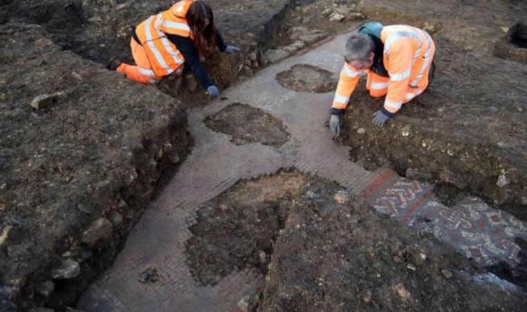 Arkeologlar, İngiltere'de bir süpermarket inşaat alanının altında Antik Roma Mozaiği keşfettiler.