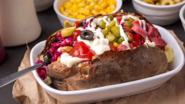 Tepsi kumpirinin en eğlenceli yanı, üzerine eklenecek malzemelerin kişisel tercihlere göre şekilleniyor olmasıdır. Haşlanmış mısır, doğranmış sosis, kornişon turşu, rendelenmiş havuç, haşlanmış bezelye, zeytin ve hatta kırmızı biber gibi birçok malzemeyle kendi kombinasyonunuzu oluşturmak lezzeti katlar.